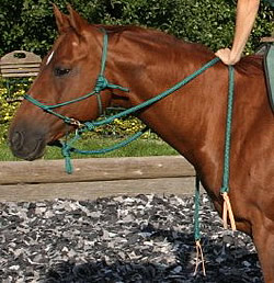 Frage: Welche gebisslose Zäumung bevorzugen Sie und warum? HW: Ich bevorzuge das Knotenhalfter mit Ringen an der Seite zum Anbringen Grund: Ich habe mein Reiterleben lang die unterschiedlichsten gebisslosen Zäumungen ausprobiert – das Western-Bosal, das Sidepull, den Kappzaum, die „Natural Hackamore“, das „Bitless Bridle“ bis hin zur neuesten Entwicklung, dem „LG-Zaum“ – und bin immer wieder zum Knotenhalfter zurückgekommen, das wir schon vor zehn Jahren mit seitlich angebrachten Ringen zum Reiten ausgestattet haben. HW: Grundsätzlich schließe ich mich der Argumentation des englischen Tierarztes Prof. Cook an, dass Gebisse im Maul des Pferdes einen schädigenden Einfluss auf den Organismus und auch auf die Psyche der Reittiere haben können. Wer mit Pferden verantwortlich umgeht, kann diese Forschungsergebnisse nicht ignorieren. Leider werden sie aber ignoriert.