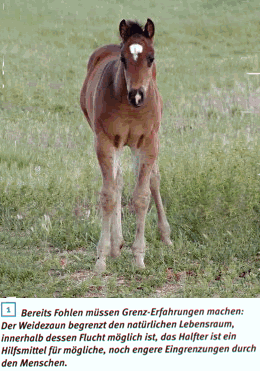 ist überlebens- wichtig Seit die Spezies vor rund 4000 Jahren in Babylonien erstmals domestiziert wurde, hat sie sich als Haus-pferd zwar an räumliche Einengung gewöhnt und die natürliche Furcht vor unnatürlichen Grenzen überwunden. Dennoch macht manch leidgeplagter Pferde-besitzer hier bisweilen andere Erfahrungen: Wenn sein Pferd aus der Weide ausbricht, in Box oder Paddock ran- |