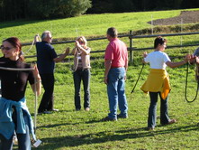 Auf dem Wanderreithof Kern in Oberösterreich strahlte Ende September 2007 nicht nur die Sonne, sondern auch die Gesichter aller Teilnehmer - vor allem als sie in die Rolle der Pferde schlüpfen sollten... |