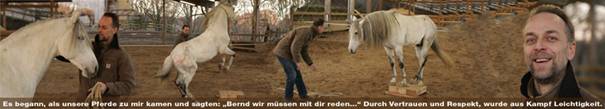 Dr. Peter Dolensky: "Meine Kenntnisse in Sachen Kommunikation konnte ich in diesem Seminar wunderbar erweitern. Mir ist klar geworden, worin Euer Erfolg liegt: Erstens seid Ihr außerordentlich gut in Eurem Job, zweitens habt Ihr positive Energie und Ausstrahlung, und drittens macht Ihr in Eurem Seminar etwas ganz Außergewöhnliches." | ![]() Lambert Heyder : „Darin liegt die Stärke des Konzepts: mithilfe des „Mediums“ Pferd konnte ich Führung emotional ‘erleben’.“ |